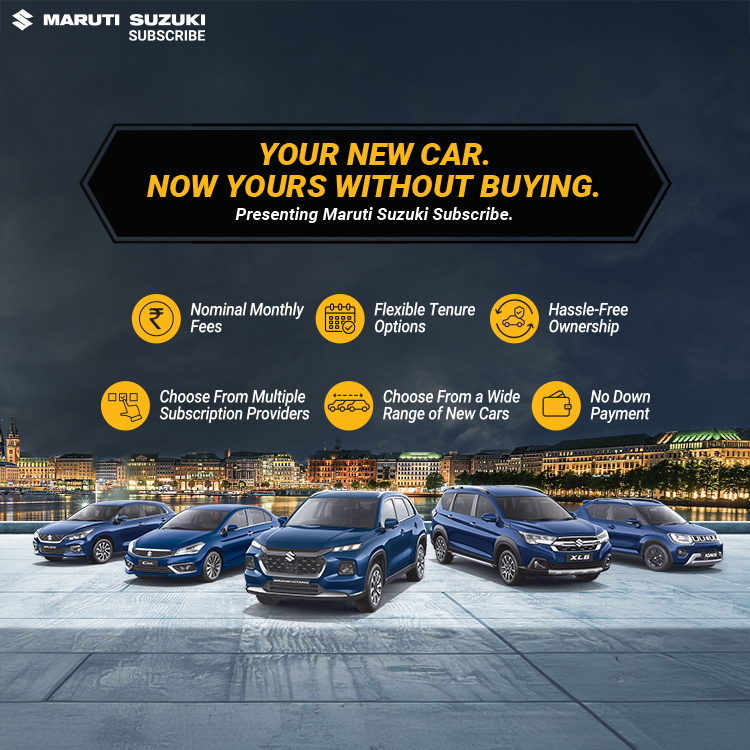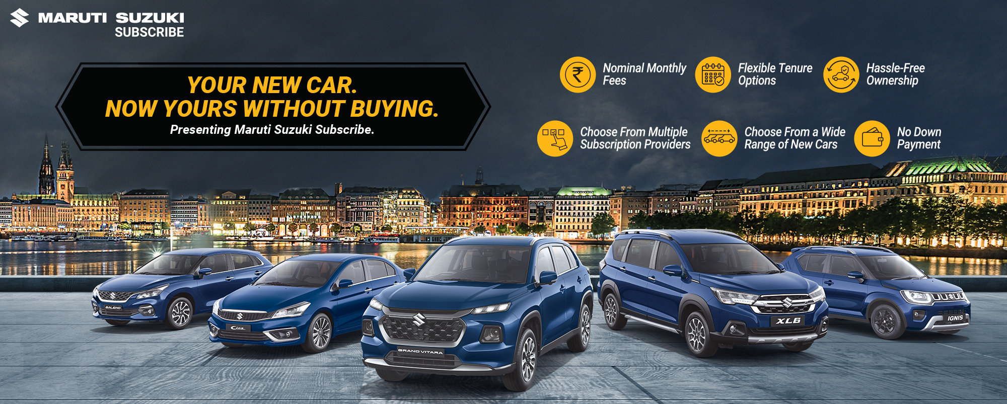 Maruti Suzuki Subscribe enables all customers to enjoy driving their preferred Maruti Suzuki cars without having to deal with all the financial responsibilities that come with owning a car.All you need to do is opt for a monthly subscription plan at a fixed monthly fee, which includes the routine maintenance and insurance costs, and choose a flexible tenure. At Aher Automobiles in, Kalyan, Mumbai, all Hatchback, Sedan, SUV, the MUV models line-up includes Baleno, Invicto, EVitara, Jimny, Ciaz, Ignis, Fronx, Grand Vitara, XL6. Here, you will enjoy Maruti Suzuki Subscribe benefits such as: